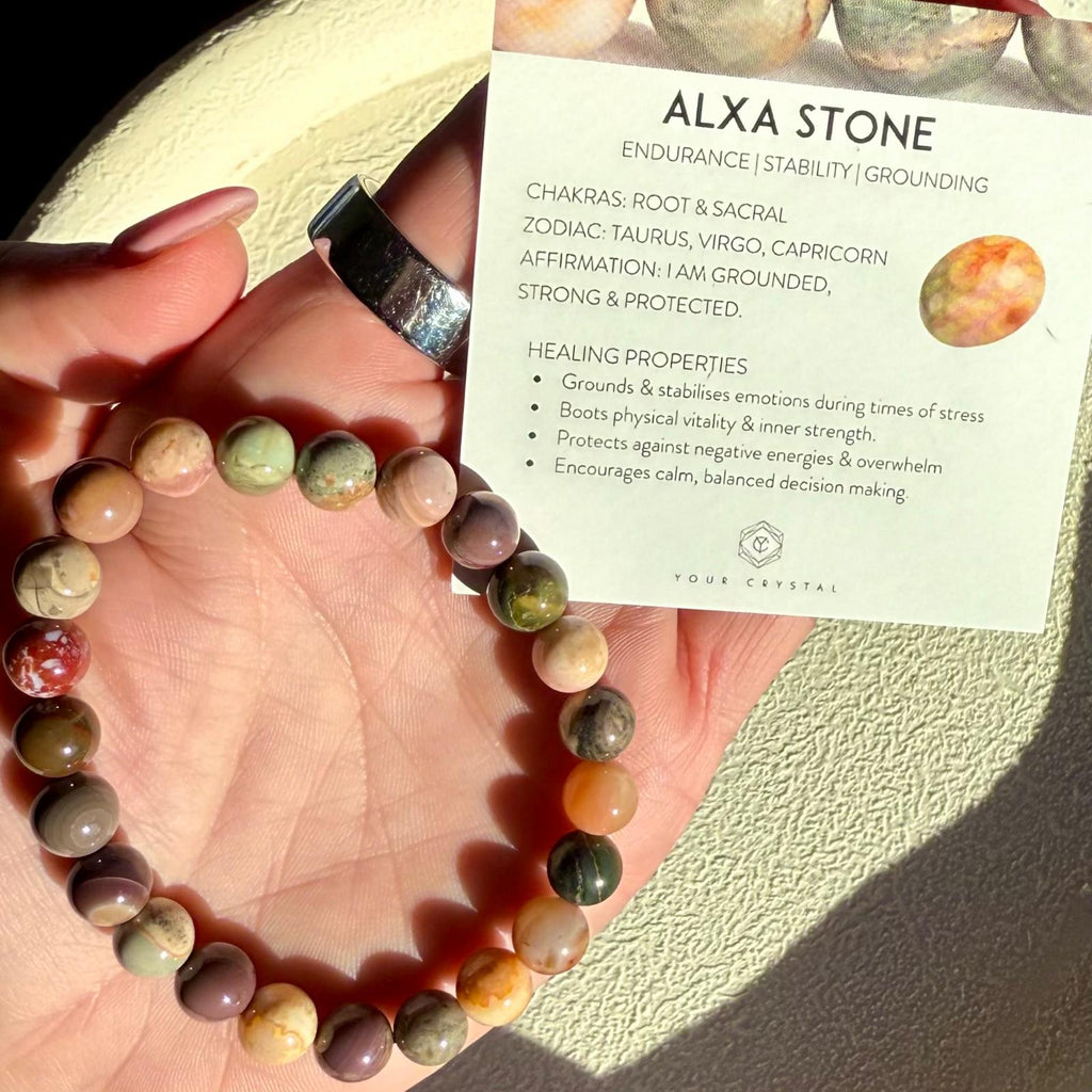 Alxa Stone is a grounding crystal of inner strength, resilience, and clarity. Born from the shifting sands and ancient energy of the desert, it embodies balance between movement and stillness — helping you stay calm and centred even in times of change. Known for its warm, earthy tones and stabilising vibration, Alxa Stone connects you deeply with the present moment and your own inner truth.